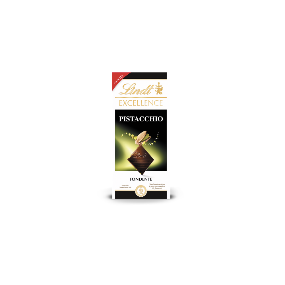Tavoletta EXCELLENCE Pistacchio 100g è la pregiata unione tra il finissimo cioccolato fondente Lindt e l'amata granella di pistacchio. Un trionfo sensoriale di cui non si riesce a fare a meno!