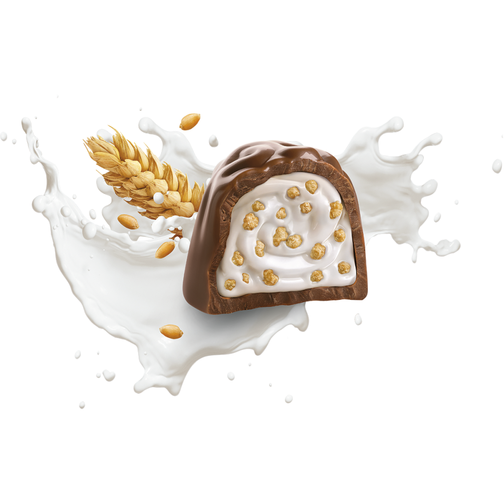 Sugar, vegetable fats (coconut, palm kernels, palm, - in varying proportions), cocoa paste*, whey powder, whole milk powder (7.5%), skimmed milk powder (6.5%), cocoa butter*, crunchy cereals (5.5%) (corn flour, rice flour, sugar, wheat flour, cocoa powder*, whey powder, salt), emulsifier: soya lecithin, flavouring.