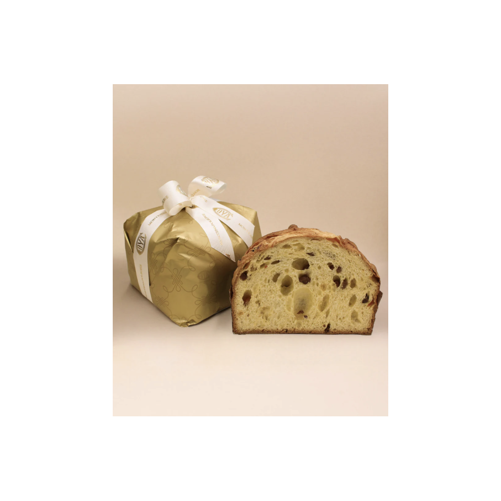 Ingredienti: Farina di frumento, Uva sultanina, Burro, Zucchero, Scorze d’arancia candite (Scorze d’arancia, Sciroppo di glucosio-fruttosio, Saccarosio), Tuorlo di uova pastorizzate, Lievito madre naturale (farina di frumento) Scorze di cedro candite (Scorze di cedro, Sciroppo di glucosio-fruttosio, Saccarosio), Emulsionanti: mono e di gliceridi degli acidi grassi, Latte magro in polvere, Burro di cacao, Sale, Estratto di malto d’orzo, Miele, Aromi. Può contenere altri cereali con glutine, frutta in guscio, soia, arachidi.