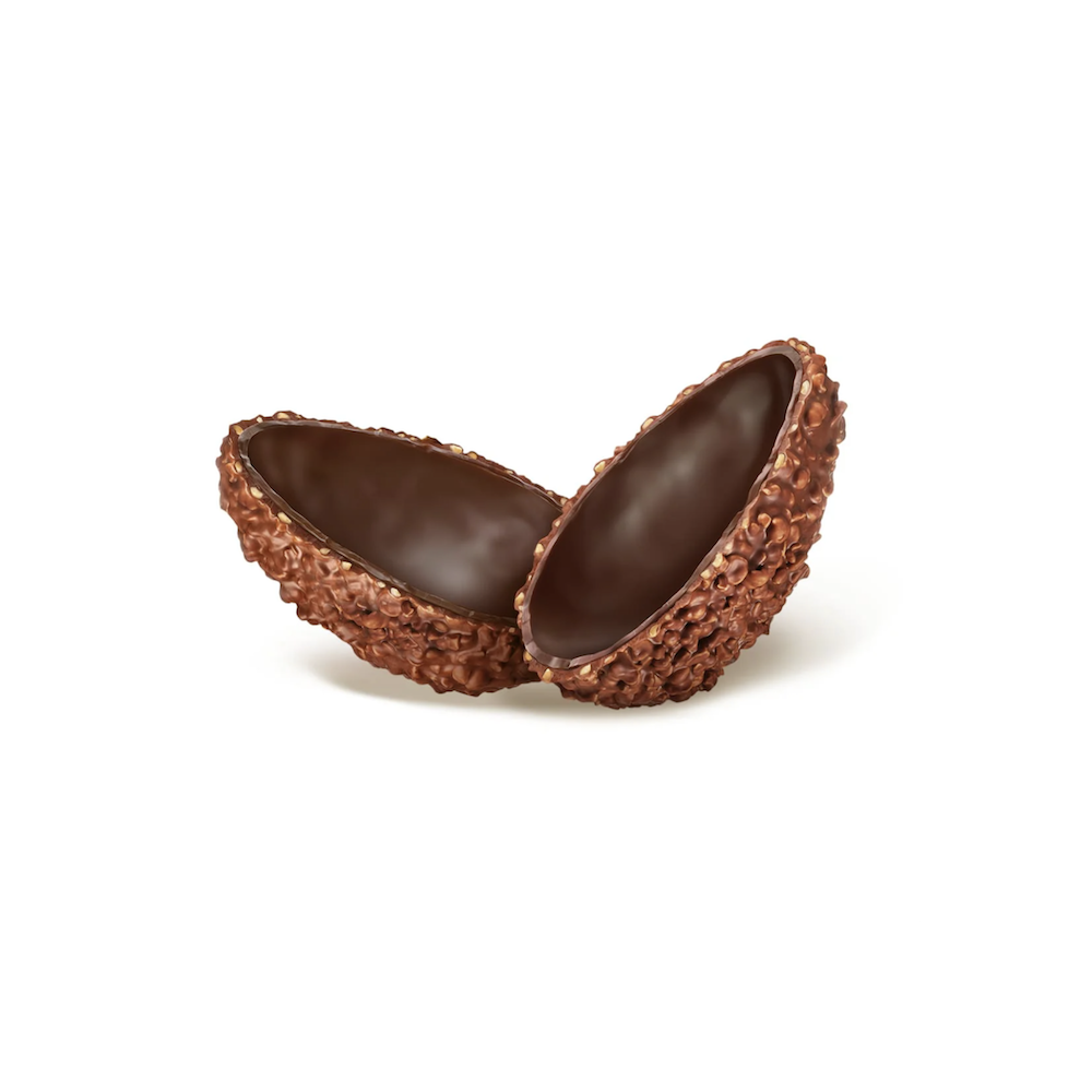 CIOCCOLATO AL LATTE E FONDENTE EXTRA CON GRANELLA DI NOCCIOLE - Ingredienti: zucchero; NOCCIOLA Piemonte IGP (25%); pasta di cacao; burro di cacao; LATTE intero in polvere; LATTE scremato in polvere; LATTOSIO; BURRO anidro; emulsionante (lecitina di SOIA); estratto di malto d’ORZO; aromi; bacche di vaniglia. Può contenere altra FRUTTA A GUSCIO. Cioccolato al latte - Cacao: 30% min. Cioccolato fondente extra - Cacao: 50% min. Prodotto ottenuto esclusivamente da Nocciola Piemonte IGP.